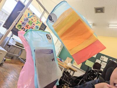 本日(5/2)、ひまわり3組教室を訪ねると、元気いっぱいに手作りの鯉のぼりが泳いでいました!いつも、季節の飾りが絶えないひまわり3組教室です。本日、この作品を持ち帰るのだとうれしそうな表情を見せてくれました!明日(5/3)からは、5日間のお休みになります。こどもの日に、この鯉のぼりが泳ぐ様子を思い浮かべながら、子どもたちがどうぞ健やかに、夢いっぱいに育ちますようにと願いました!