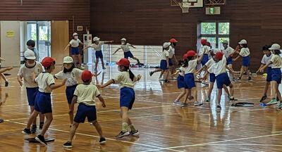 写真は、低学年(1・2年生)の子どもたちの表現の練習の様子です!先日までは、体育館で練習していた子どもたちが、今日は、本番を想定して運動場での練習を行っています!笑顔いっぱい、練習を楽しんでいます!頼もしい子どもたちです!