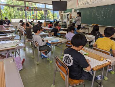 「対話的な深い学びの中で思考・表現する児童の育成~児童を学びの主体に据えた課題解決型の授業を通して~」を、本年度の研究テーマとし、全職員で教育研究に取り組んでいます。