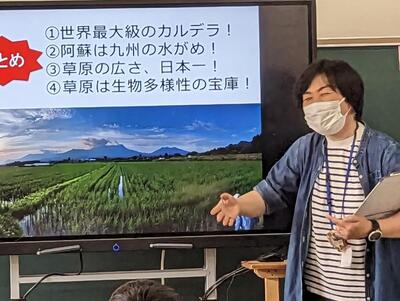 本日、子どもたちにご指導くださった方々は、みなさん阿蘇を大好きで、阿蘇を選び、阿蘇に暮らしておられる方です。阿蘇に生まれ、阿蘇に育った私たちは、この方々に出会うことで、自分のふるさとがどれほど素敵なところなのかを教えていただいています。出会いを大切に、ふるさとに誇りを持ち生きる子どもたちを育てていきたいと、強く感じた時間でした!