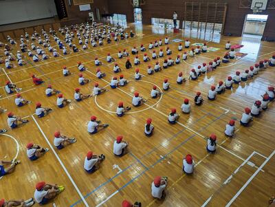 本日(5/29)、朝活動の時間に全校集会を行い、運動会の振り返りを行いました。