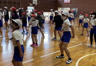 写真は、低学年(1・2年生)の子どもたちの表現の練習の様子です!先日までは、体育館で練習していた子どもたちが、今日は、本番を想定して運動場での練習を行っています!笑顔いっぱい、練習を楽しんでいます!頼もしい子どもたちです!