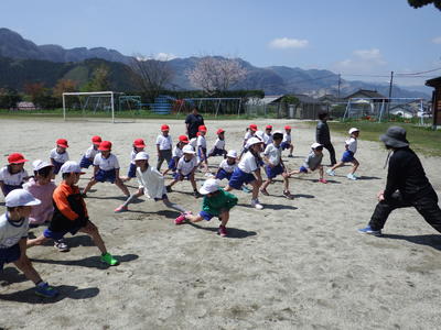 一覧へ 1. 何でもチャレンジ!一年生!~その2~ 投稿日時: 2019/04/25 情報担当 元気いっぱいの一年生!写真は、体育の時間の様子です。体育服への着がえも上手になり、準備運動のかけ声も運動場いっぱいに響いています!運動場の遊具にのぼったりぶらさがったりすることも上手になりました!体育の時間にも、小学校生活の楽しみをたくさん味わってほしいと思います!