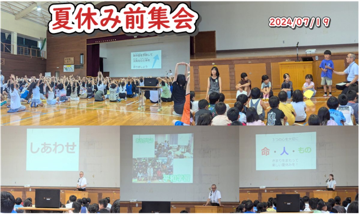 一覧へ 1. 1学期前半を写真で振り返ります!! ~7月・成長~ 投稿日時: 2024/08/07 管理 令和6年度 高森中央小学校の一学期期前半を写真で振り返ります!!夏休みを前に、委員会活動や縦割り班活動、学級活動が活性化され、学習のまとめの時期を迎える中で、子どもたちは大きく大きく成長しました。7月、短い時間だったけれど、頼もしく成長する子どもたちの姿は輝いていました!!