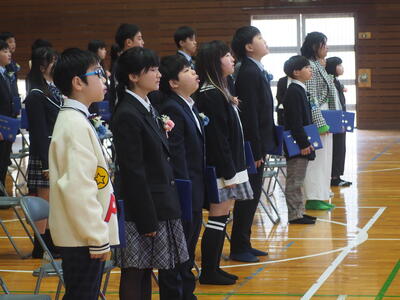 45名の子どもたちが過ごした6年間は、楽しく充実した時間だったに違いありません。しかし、思い描いたような学校生活を送ることができずに、もどかしく感じることもあったでしょう。3年前の3月、新型コロナウイルス感染症予防のために急に休校することになった時、子どもたちは戸惑いながらも、真剣にリモートでの学習に参加しました。仲間の転校によるさみしい別れも、何度も経験しました。しかし、どんな時も、決して学びを止めることなく、ひたむきに進み続けてきた子どもたちです。