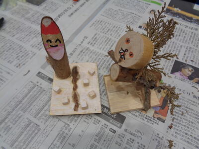 高森町の特産品である南郷檜についてお話を聞いた子どもたちは、高森町にはまだ知らない素敵なものがたくさんあることを知って、嬉しそうな表情を見せました。南郷檜の小枝を使って自由に作った動物や虫などはかわいらしく、南郷檜のかんなくずを使って作った花はとてもきれいで、きっと、子どもたちの宝物になったに違いありません。