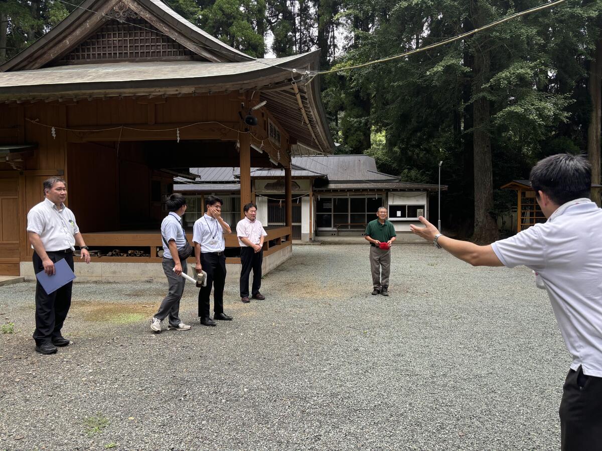 写真は、本日(8/26)午前中に行いました、高森町教育研究会『ふるさと部会』の研修の様子です。下り宮で知られる「草部吉見神社」や白水路を訪れて、講師の後藤様にご説明をいただいています!