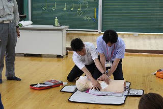 今週水曜日の校内研修で、心肺蘇生法の講習会を行いました。これは、いよいよシーズンとなる水泳学習を前に、全職員で毎年取り組んでいるものです。残念なことに、毎年水の事故が全国で起こります。絶対に起こらないという気持ちではなく、絶対に起こさない、万が一起こっても必ず命を守る・・・真剣な眼差しでの講習会となりました。