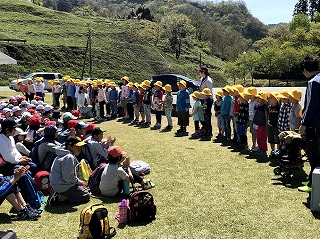 気持ちのいいほど晴れわたった好天の中、本年度の歓迎遠足が実施されました。遠足の目的地は、月回り公園。片道3Km以上の道のりを頑張って歩きました。6年生にとても貴重な体験となりました。1年生と一緒に歩いたり、遊んだり、お