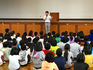 17日は「仲良し集会」がありました。各委員会から今年の目標が発表され、待ちに待ったレクレーションの時間です。企画委員会の進行のもと、貨物列車とクイズで大盛り上がり。男女や学年関係なく、みんなで関わり、楽しめることも本校の魅力の一つだと思います。次回の仲良し集会が今から楽しみです。