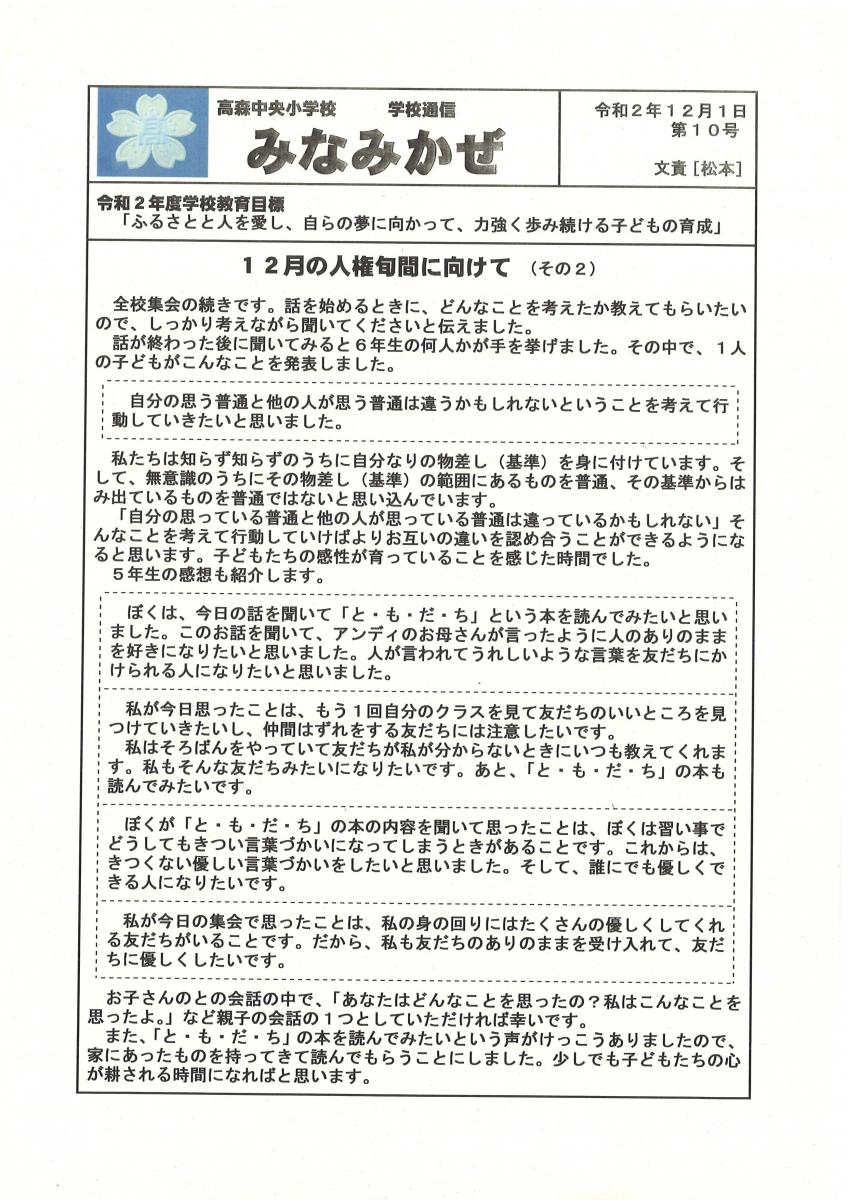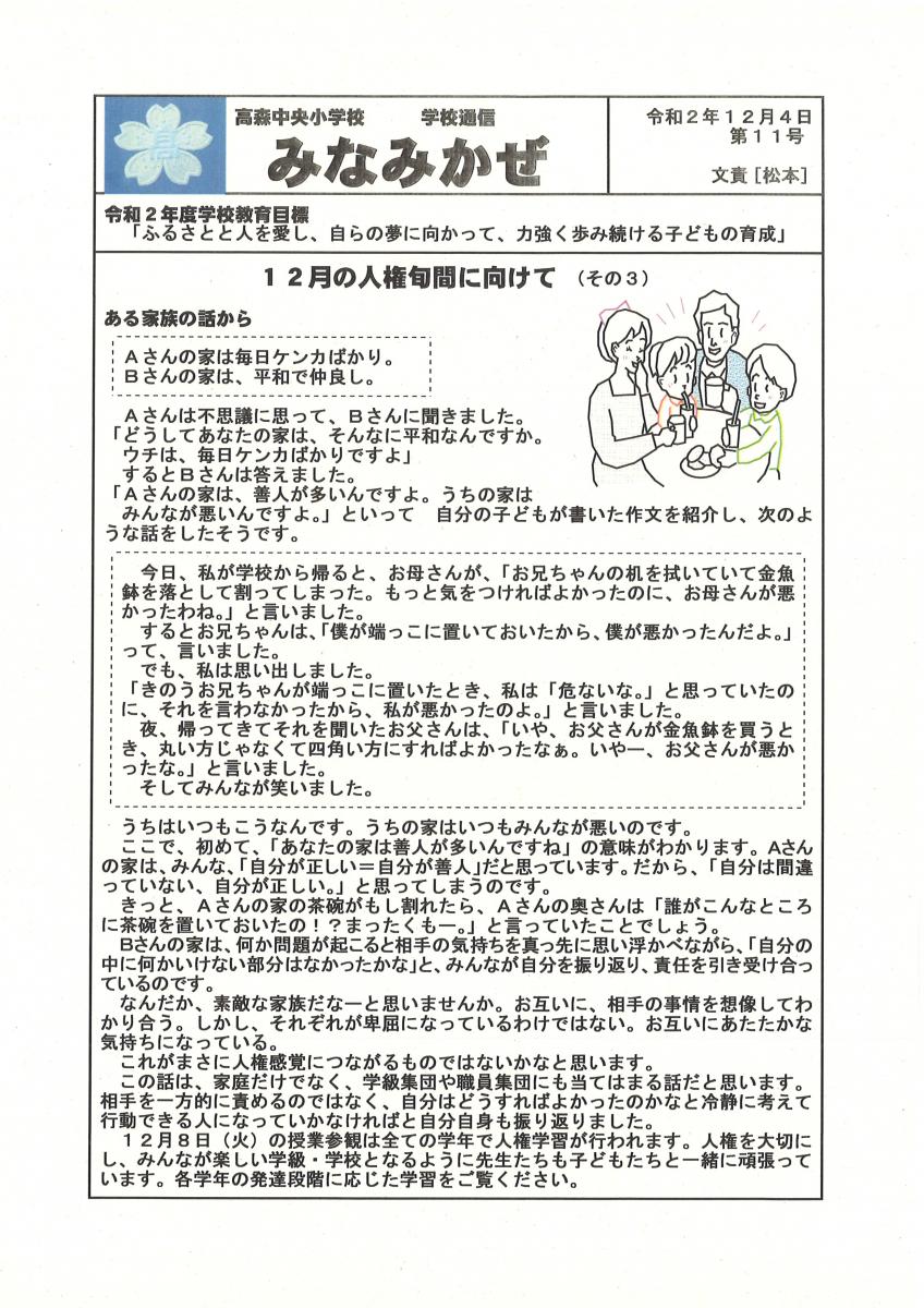 高森中央小通信「たかもりっ子」R6.11.12