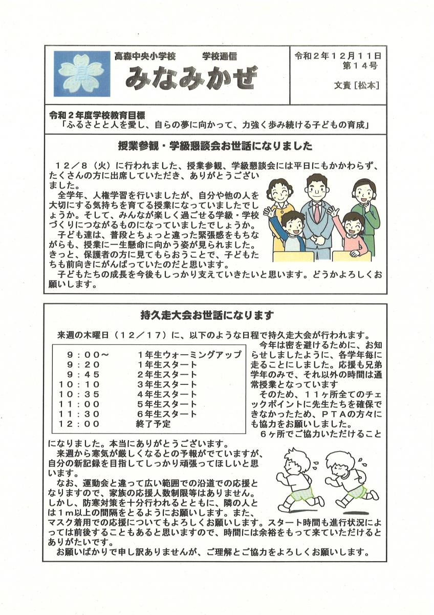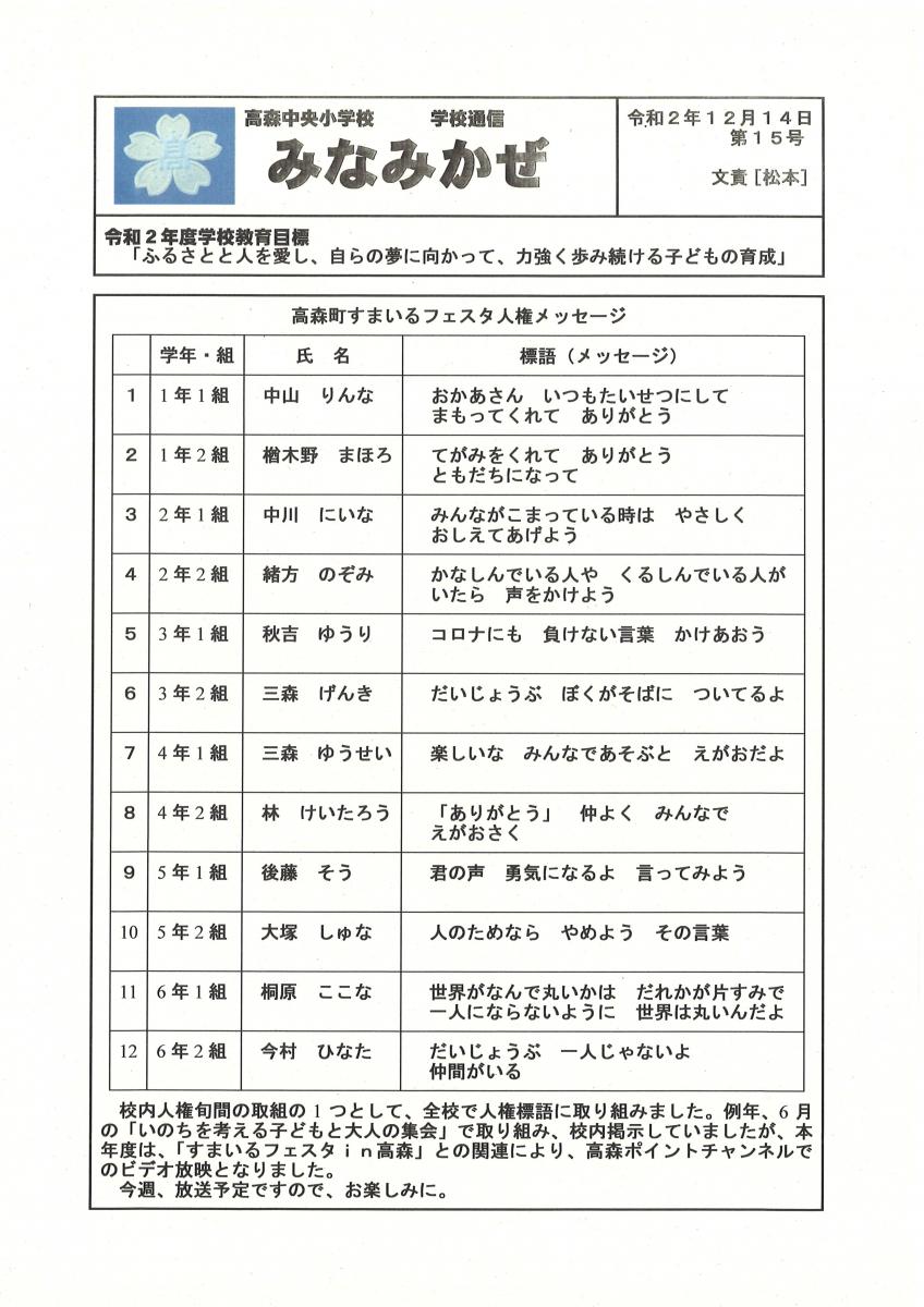 高森中央小通信「たかもりっ子」R6.12.16