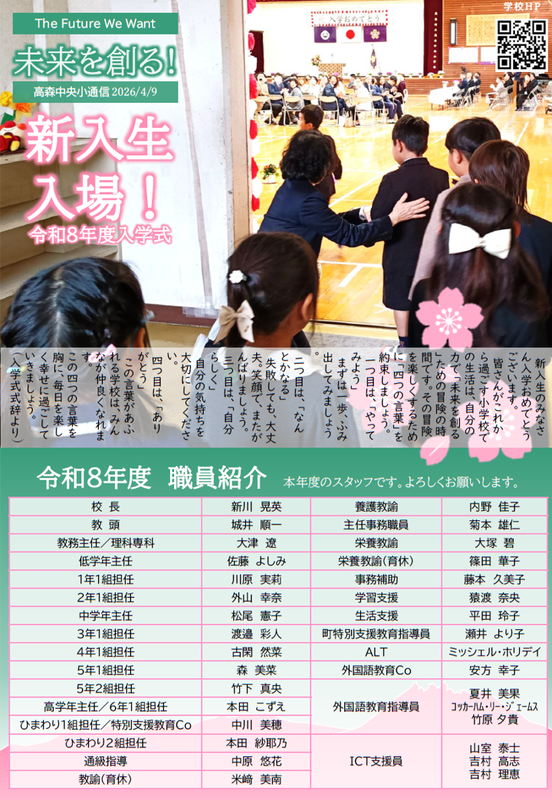 校長室より 全ての記事 全ての記事 カテゴリ 今日の出来事 連絡事項 報告事項 ミーティング 本・雑誌 ニュース 映画・テレビ 音楽 スポーツ パソコン・インターネット あいさつ 総合学習 アニメ・コミック アーカイブ 2026年4月 (1) 2026年3月 (2) 2026年2月 (1) 2026年1月 (1) 2025年12月 (1) 2025年11月 (1) 2025年10月 (1) 2025年9月 (1) 2025年8月 (0) 2025年7月 (1) 2025年6月 (1) 2025年5月 (1) 2025年4月 (1) 2025年3月 (3) 2025年2月 (1) 2025年1月 (1) 2024年12月 (1) 2024年11月 (1) 2024年10月 (1) 2024年9月 (1) 2024年8月 (0) 2024年7月 (1) 2024年6月 (1) 2024年5月 (1) 2024年4月 (1) 2024年3月 (0) 2024年2月 (0) 2024年1月 (0) 2023年12月 (0) 2023年11月 (0) 2023年10月 (0) 2023年9月 (0) 2023年8月 (0) 2023年7月 (0) 2023年6月 (1) 2023年5月 (0) 2023年4月 (1) 2023年3月 (0) 2023年2月 (0) 2023年1月 (0) 2022年12月 (1) 2022年11月 (1) 2022年10月 (1) 2022年9月 (2) 2022年8月 (1) 2022年7月 (1) 2022年6月 (1) 2022年5月 (2) 2022年4月 (5) 2022年3月 (0) 2022年2月 (0) 2022年1月 (0) 2021年12月 (0) 2021年11月 (0) 2021年10月 (0) 2021年9月 (0) 2021年8月 (0) 2021年7月 (0) 2021年6月 (0) 2021年5月 (0) 2021年4月 (0) 2021年3月 (19) 2021年2月 (32) 2021年1月 (0) 2020年12月 (0) 2020年11月 (0) 2020年10月 (0) 2020年9月 (7) 2020年8月 (0) 2020年7月 (0) 2020年6月 (0) 2020年5月 (0) 2020年4月 (1) 2020年3月 (2) 2020年2月 (4) 2020年1月 (4) 2019年12月 (3) 2019年11月 (5) 2019年10月 (4) 2019年9月 (4) 2019年8月 (1) 2019年7月 (4) 2019年6月 (3) 2019年5月 (3) 2019年4月 (2) 2019年3月 (3) 2019年2月 (3) 2019年1月 (3) 2018年12月 (3) 2018年11月 (5) 2018年10月 (4) 2018年9月 (4) 2018年8月 (2) 2018年7月 (3) 2018年6月 (4) 2018年5月 (3) 2018年4月 (2) 2018年3月 (3) 2018年2月 (4) 2018年1月 (3) 2017年12月 (4) 2017年11月 (4) 2017年10月 (4) 2017年9月 (4) 2017年8月 (2) 2017年7月 (2) 2017年6月 (5) 2017年5月 (3) 2017年4月 (3) 2017年3月 (4) 2017年2月 (4) 2017年1月 (3) 2016年12月 (4) 2016年11月 (4) 2016年10月 (4) 2016年9月 (5) 2016年8月 (1) 2016年7月 (4) 2016年6月 (4) 2016年5月 (5) 2016年4月 (0) 2016年3月 (5) 2016年2月 (1) 2016年1月 (5) 2015年12月 (2) 2015年11月 (0) 2015年10月 (0) 2015年9月 (0) 2015年8月 (0) 2015年7月 (0) 2015年6月 (5) 2015年5月 (0) 2015年4月 (0) 2015年3月 (7) 2015年2月 (10) 2015年1月 (6) 2014年12月 (6) 2014年11月 (7) 2014年10月 (14) 2014年9月 (9) 2014年8月 (1) 2014年7月 (4) 2014年6月 (5) 2014年5月 (3) 10件 1件 5件 10件 20件 50件 100件 未来を創る!20260409 投稿日時 : 04/09 管理 未来を創る! 20260409.pdf 令和7年度(2025年度)カバーフォト集 投稿日時 : 03/31 管理 本年度のトップページを彩った各月のカバーフォトをまとめてみました。 1年間の子供たちの活躍を振り返ることができます。 高森中央小通信「未来を創る!」2026/3/23 投稿日時 : 03/23 管理 未来を創る!2026.3.23.pdf 高森中央小通信「未来を創る!」2026.2.20 投稿日時 : 02/20 管理 未来を創る!2026.2.20.pdf 高森中央小通信「未来を創る!」2026/1/26 投稿日時 : 01/26 管理 未来を創る!2026.1.26.pdf 高森中央小通信「未来を創る!」2025/12/12 投稿日時 : 2025/12/12 管理 未来を創る!2025.12.12.pdf 高森中央小通信「未来を創る!」2025/11/27 投稿日時 : 2025/11/27 管理 未来を創る!2025.11.27.pdf ↓図をクリックしてダウンロード 高森中央小通信「未来を創る!」2025/10/24 投稿日時 : 2025/10/24 管理 未来を創る!2025.10.24.pdf ↓↓図をクリックしてダウンロード 高森中央小通信「未来を創る!」2025/9/19 投稿日時 : 2025/09/18 管理 未来を創る!2025.9.19.pdf ↓↓図をクリックしてダウンロード 高森中央小通信「未来を創る!」2025/7/10 投稿日時 : 2025/07/10 管理 未来を創る!2025.7.10.pdf ↓↓図をクリックしてダウンロード 123456789 »