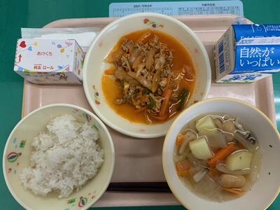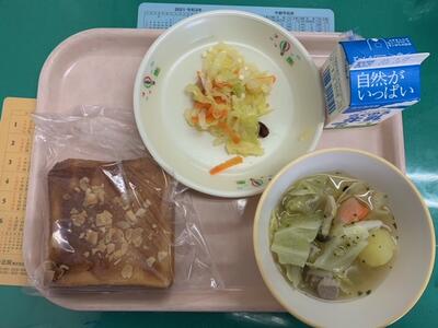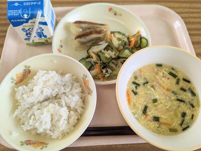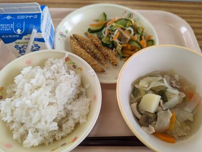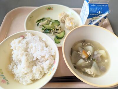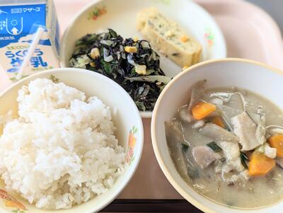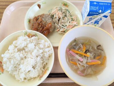 5日ぶりの給食は、和食の基本である「一汁二菜」です!バランスよくいただきました!