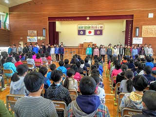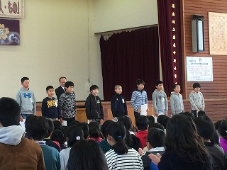 6年生では、卒業後別の中学校へ行く友達とのお別れ会が開かれました。2月の学級会の思い出大作戦で実践することが決まってから、お別れ会実行委員会の子どもたちが、この日までこつこつと準備を進めてきました。本番は、37人全員で、バスケット大会、お笑いダンスの出し物、プレゼント渡し・歌のプレゼント・お礼の言葉・思い出ムービーなど、どれも盛り上がる内容となりました。別れは本当につらいのですが、同じ空の下でそれぞれが元気にがんばって、成人式の日に、またみんなでお祝いできたらいいなと思います。