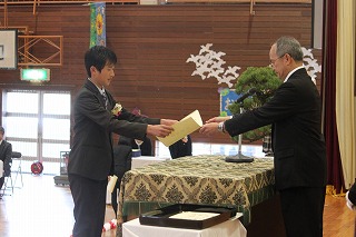 卒業生に5年生が、胸花をつけました。慣れない手つきながらも、卒業生と5年生で一緒につけました。卒業生は、旅立ち&新たな門出。在校生は、最上級生としてのバトンの引継ぎ・・・