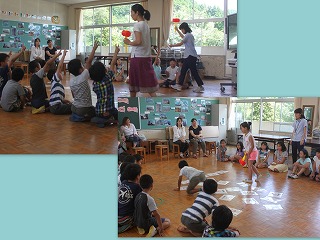 4年生で英語の研究授業が行われました。体を使って英語に親しむ子ども達の顔には笑みが溢れていました。
