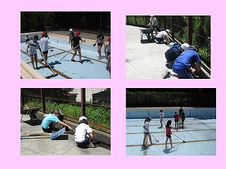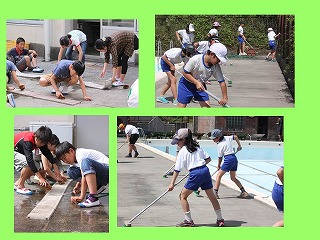 5年生は、プールサイドの掃除や、草刈などを頑張りました。プールの中に入れず、6年生をうらやましそうに見ていましたが、「来年は自分たち」という気持ちで頑張っていました。