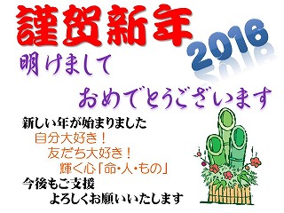 明けましておめでとうございます!いよいよ新しい年が始まりました。今年はどんな年になるのか・・・今から楽しみです!学校はまだ冬休み中ですが、わたしたち職員も子どもたちを迎える準備に大忙し!2学期後半は卒業式を始め大切な行事が目白押しです。子どもたちと一緒に一日一日を大切に過ごしていきたいと思います。今年も、ご支援よろししくお願いいたします。