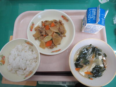 今日は、大根を使った献立でした。大根には2種類あり、いっぱんに流通しているのが青首(あおくび)大根です。大根の旬は12月から2月で、この時期の大根はあまみがあってみずみずしく柔らかいです。旬の大根のあまみを味わうことができました。ごちそうさまでした。