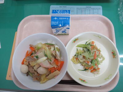 2022年12月最後の給食は、魚介のうまみたっぷりで野菜もたくさん入った中華丼(ちゅうかどん)でした。朝からたくさんの雪が降りましたが、子どもたちは元気に登校し雪で遊んでいました。給食センターの皆様冷たい作業を繰り返し、いつもおいしい給食を作ってくださりありがとうございます。来年もよろしくお願いいたします。