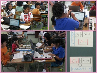 中央小でもローマ字による正しい指使いでの文字入力(タッチタイプ) を身に付けさせるようにするために練習に取り組んでいます。電子黒板の右半分に実物投影機で手元のキーボードを映し、左半分にワープロソフトを立ち上げて、指の動きと文字の入力を見比べることができるようにして説明しました。「考える早さで文字を打てる」…そんな力が身に付けばと願っています。