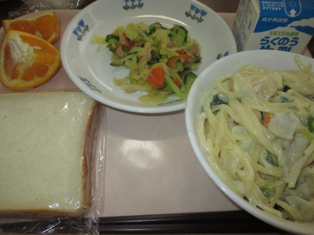 今日は手作りグラタンの登場でした。チーズとパン粉に焦げ目が付いて、香ばしくて美味しかったようです。カップに付いたグラタンを米粉パンでこそいでキレイに食べてくれている子がいました。あと、やっぱり春雨スープのうずらの卵は人気ですね♪私も子どもの頃、大好きで、最後までとって食べていました(笑)
