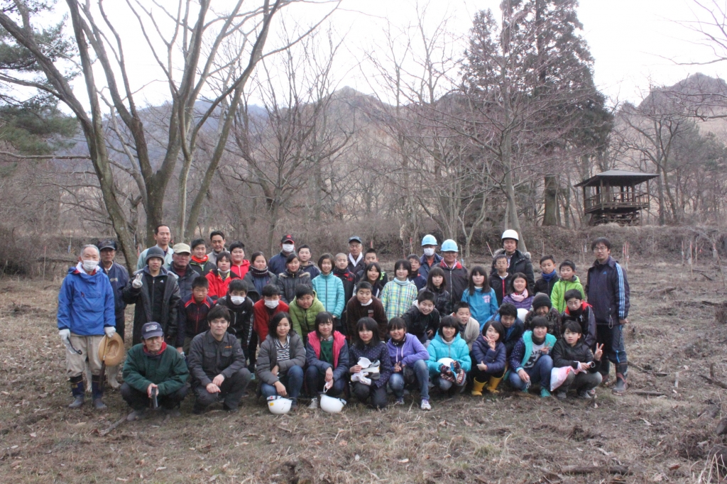 高森町林業研究クラブ(村上正誠会長)と阿蘇森林組合高森支所(後藤秀士支所長)の全面的な協力を得て、6年生が植樹と枝打ち体験をしました。