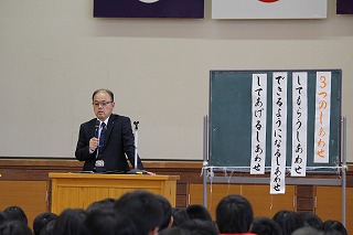 雪も降り寒さが厳しい中、4校時目に冬休み明け集会が行われました。