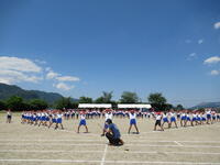 晴天に恵まれ1時間目から3時間目までを使って、開会式、徒走、団体競技、応援団、表現、閉会式を練習しました。
