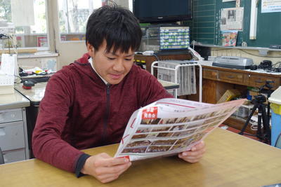 新規採用として1年間の職務を終えた荒牧先生。高森中央小学校の広報誌である「はなしのぶ」を読んでいます。PTAの広報委員会の方々を中心に作成をされました。昨年度の中央小の歩みを確かめているのでしょう。そしていよいよ来週から新学期の授業がスタート。今年はどんな出会い、学びがあるのでしょうか。