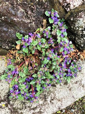 今日の野草は「キランソウ(金瘡小草)」です!写真は下校指導の中で撮ったもので阿蘇のどこにでも見つけることができる野草です。別名ジゴクノカマノフタとも呼ばれており、その由来には諸説あります。1つ目は地を這うように生えるその姿からという説、2つ目は古くから民間薬として使われており、その効き目から地獄の釜にフタをしていまう言い伝えからです。花言葉は「あなたを待っています」だそうです。新たな出会いに意義を感じながら新学期を楽しんでほしいと思います!