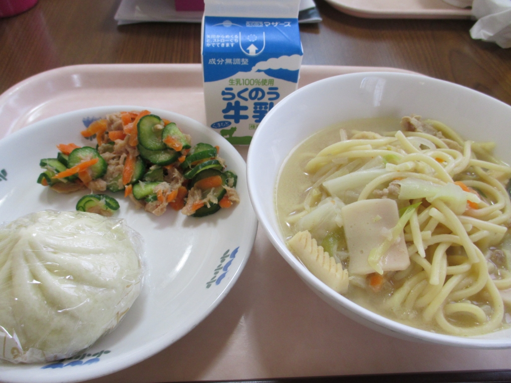 今日は長崎味の旅ということで「ちゃんぽん」の登場でした。麺が伸びないよう時間ギリギリに仕上げているのですが、子どもたちが食べるころには、麺がふくれ、だいぶ汁が少なくなっていました!それでもおいしいと食べてくれていたのでよかったです。家で料理をするのと大量調理は全く違うので難しいです。