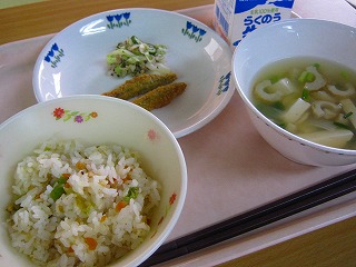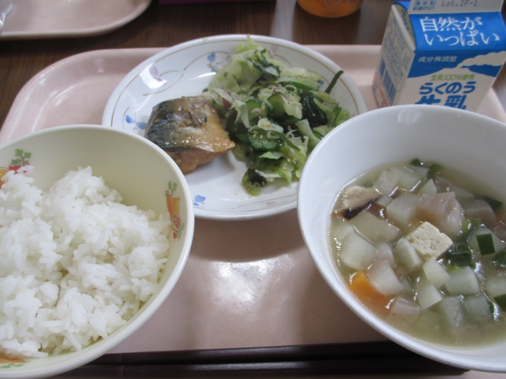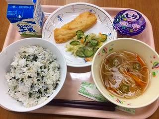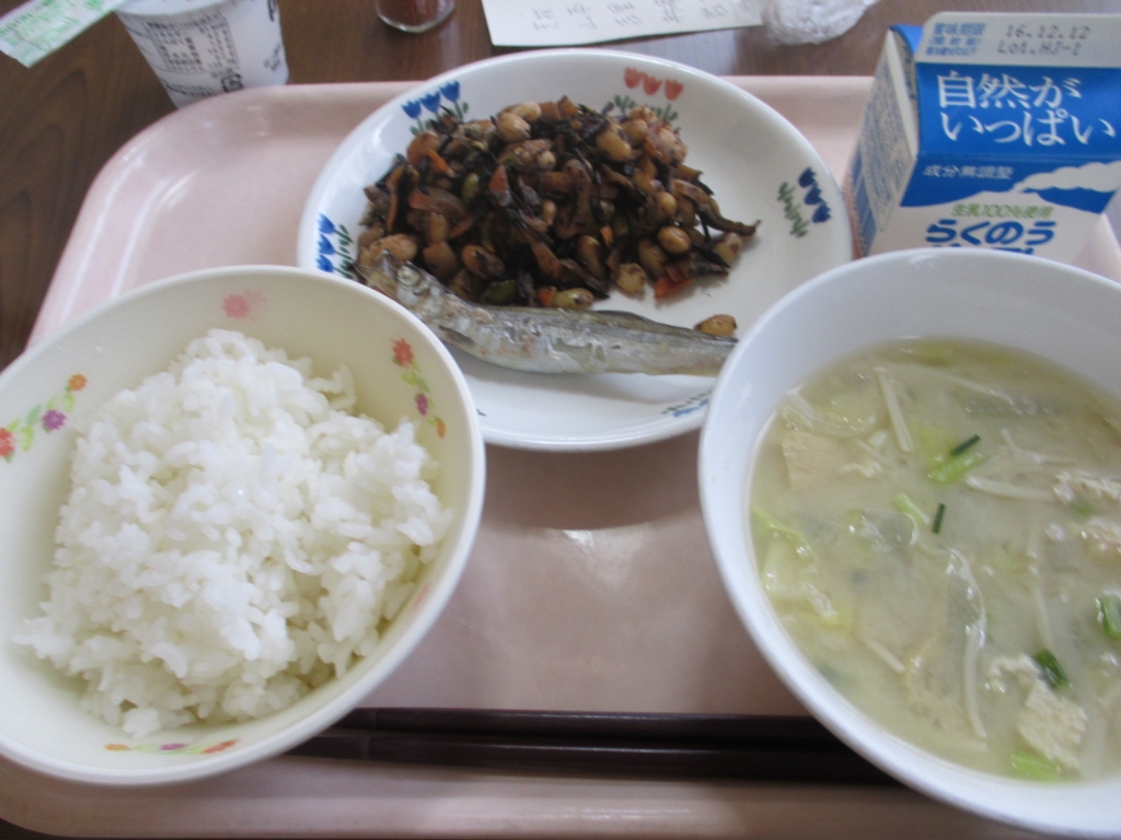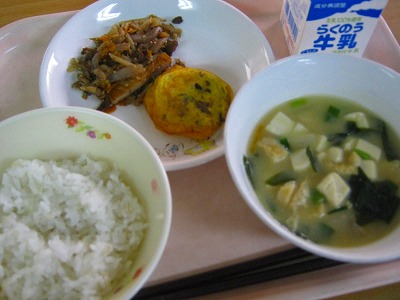 今日は「ザ・和食」メニューでした。小学校は午後から来年1年生になる子どもたちの就学時健診があったので