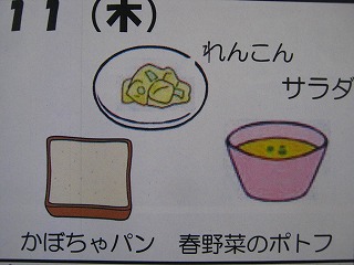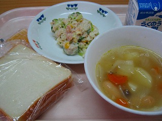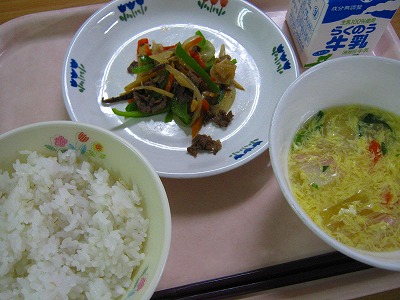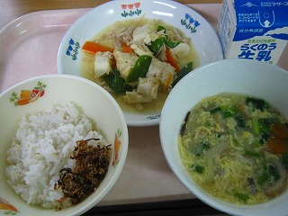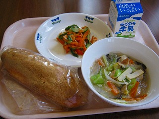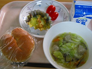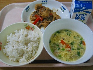 今日の給食は中華の献立でした。1年生の教室に行くと「スーミータンってどういう意味ですか?」との質問が!!「スーミーはとうもろこし、タンはスープ、つまりとうもろこしが入ったスープだよ。」と言うと納得した様子でした。