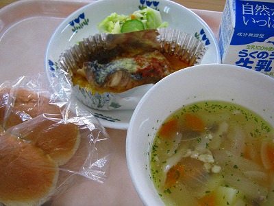 今日は、台風でしたがいつも通り給食を提供することができました。ちょうど台風が通過する時間帯にパン屋さんが配送にこられ、暴風のなか、子どもたちのパン箱がぬれないように考えて運んでくださいました。台風のなかでもいつものように配送していただきありがたいなぁと改めて思いました。