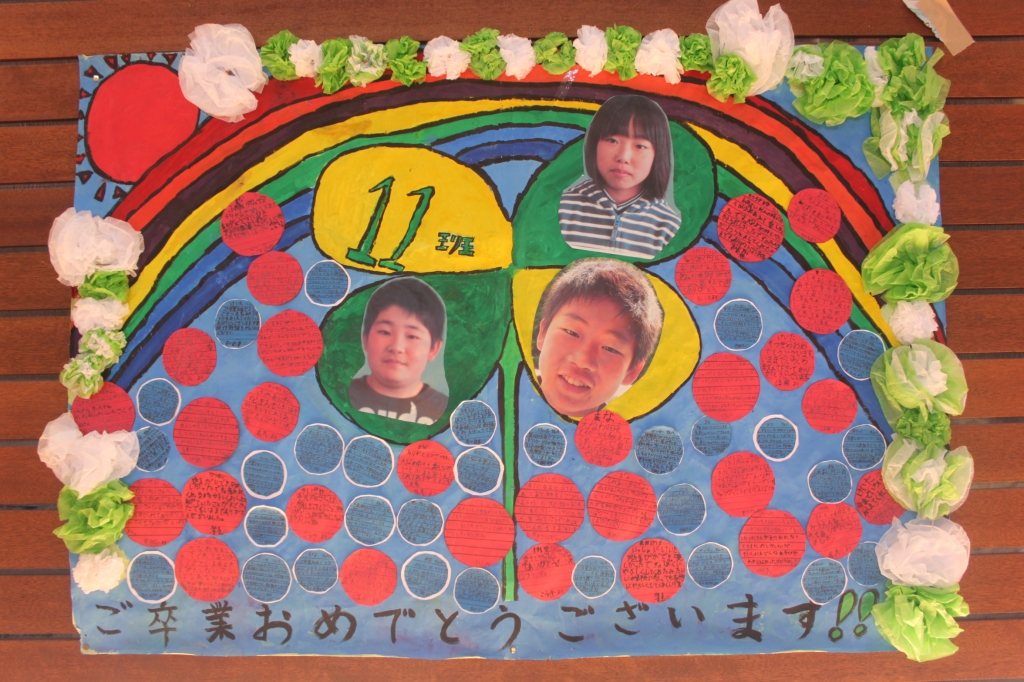今回の集会で、計画から運営まで頑張ってくれた5年生、入場時にすばらしい合奏をしてくれた4年生、素敵なプレゼントを作ってくれた3年生、入退場時にアーチを作ってくれた2年生、そして6年生を体育館までエスコートしてくれた1年生、一人ひとりに「ありがとう」が言いたいです。
