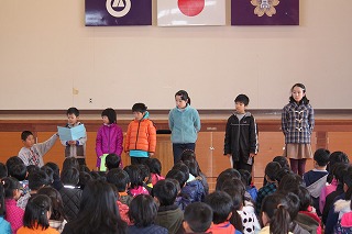 さて、今回の集会でも学年代表による冬休みに頑張ったことと2学期後半に頑張りたいことの発表を行いました。冬休みに煮しめ作りの手伝いをした子どもの発表は、具体的で分かりやすく子どもの成長を感じました。また、「最上級生としての責任を果たしたい。」「部活動をがんばりたい。」「たくさん本を読みたい。」「次の学年に上がるための準備をしたい。」など、どの子どもの発表も「よく考えているなあ」と感心しました。子どもたちの発表を聞きながら、私たちは、子どもたちの目標の実現に向けてしっかり指導・支援をしなければと強く思いました。