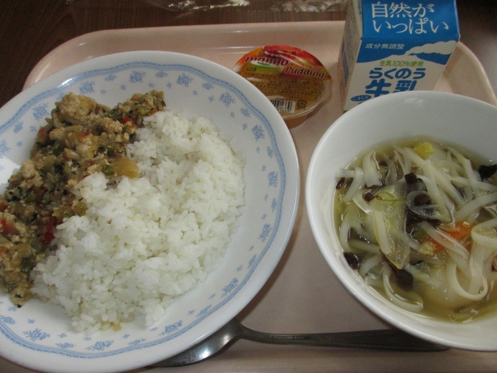 手作りブルーベリ蒸しパンでした。小中学校合わせて約500個の蒸しパンをホットケーキミックスで作りました。調理員さんが大きな泡だて器を両手で持ち、スプーンおばさんのように力強く混ぜてくれました!今日はとても忙しかったのですが、子どもたちの美味しかったの一言に疲れが吹き飛びました!※最後に蒸しパンを食べようとして写真を撮り忘れたことにハッと気付きました。すみません!