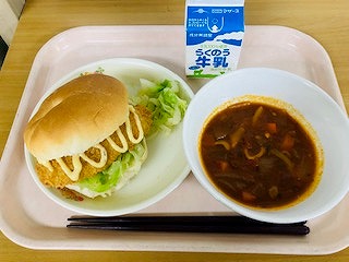 ミネストローネ☆ 投稿日時 : 2018/11/20 管理 11月20日(火)・セルフフィッシュバーガー・牛乳・ミネストローネ 今日は子どもたちも大好きなフィッシュバーガーでした。1年生・・きれいにはさめたかな?といつも気になります。大きいおかずはミネストローネでした。イタリア語で「スープ」を意味するそうで、田舎の家庭料理だそうです。ショートパスタや米を入れることもあり、給食では貝殻の形をしたマカロニを入れました。 {{options.likeCount}} {{options.likeCount}}