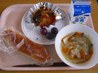 なすのミートグラタン☆ 投稿日時 : 2017/09/05 管理 9月5日(火)・玄米パン・牛乳・なすのミートグラタン・ワンタンスープ・ぶどう 今日は、高森町でとれた「ひごむらさき」をたくさん使ったなすのミーとグラタンでした。中央小の保護者の方が作られているなすなので、紹介すると1年生の子どもたちはびっくりしていました。「甘くておいしい」といって食べていました。 {{options.likeCount}} {{options.likeCount}}