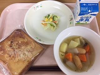 時間との勝負☆ 投稿日時 : 2018/06/26 管理 6月26日(火)・アーモンドトースト・牛乳・ポトフ・コールスローサラダ 今日は、子どもたちの好きなアーモンドトーストでした。アーモンドプードルと砂糖、マーガリンを混ぜ合わせたものを食パン1枚1枚にぬっていきます。最後にアーモンドスライスをのせてオーブンで焼いたら完成です。300枚を手作りするので時間との勝負です。10時15分には焼き始めないと間に合いません。手間もかかりますが、おいしい1品です。 {{options.likeCount}} {{options.likeCount}}