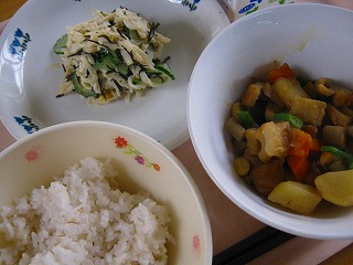 食物繊維☆ 投稿日時 : 2017/06/14 管理 6月13日(水)・麦ごはん・牛乳・大豆の五目煮・切干大根のサラダ 今日は、食物繊維たっぷり給食でした。切干大根にごぼう、大豆・・・など。食物繊維は体のなかのいらないものを外に出してくれる働きがあります。食物繊維の摂取が不足しているといわれる現代人、ご家庭でも積極的に取り入れるといいですね。 {{options.likeCount}} {{options.likeCount}}