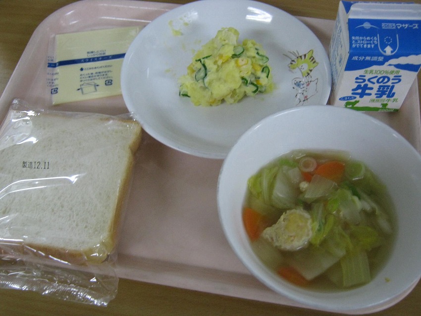 ポテトサラダ?・・・さつまいも? 投稿日時 : 2017/12/12 管理 12月12日(火)・食パン・牛乳・手作り肉団子スープ・からいもサラダ・スライスチーズ 今日は食パンにからいもサラダ、チーズをはさんで食べました。ポテトサラダと思いきや・・・「あれ?さつまいもだー!」とおどろく子どもの姿がありました。残さいもなくよく食べてありました。 {{options.likeCount}} {{options.likeCount}}