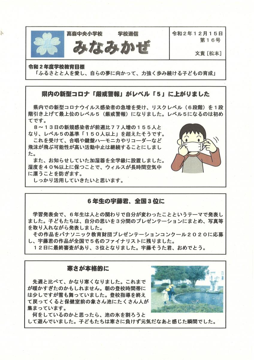学校便り『みなみかぜ』No.16
