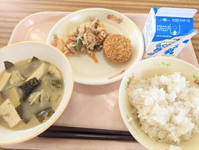 5月8日 投稿日時 : 2023/05/08 管理 今日のメニュー ★麦ごはん ★新玉ねぎの味噌汁 ★切り干し大根の含め煮 ★メンチカツ ★牛乳 5日ぶりの給食は、和食の基本である「一汁二菜」です!バランスよくいただきました!