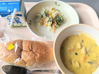 9月19日 投稿日時 : 2023/09/19 管理 今日のメニュー ★牛乳 ★ミルクパン ★かぼちゃのシチュー ★コールスローサラダ かぼちゃの黄色い色が食欲をそそる、おいしいシチューでした!シチューにパンをひたしておいしくいただきました!