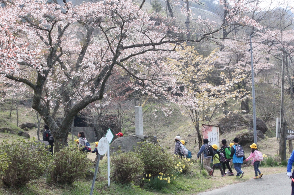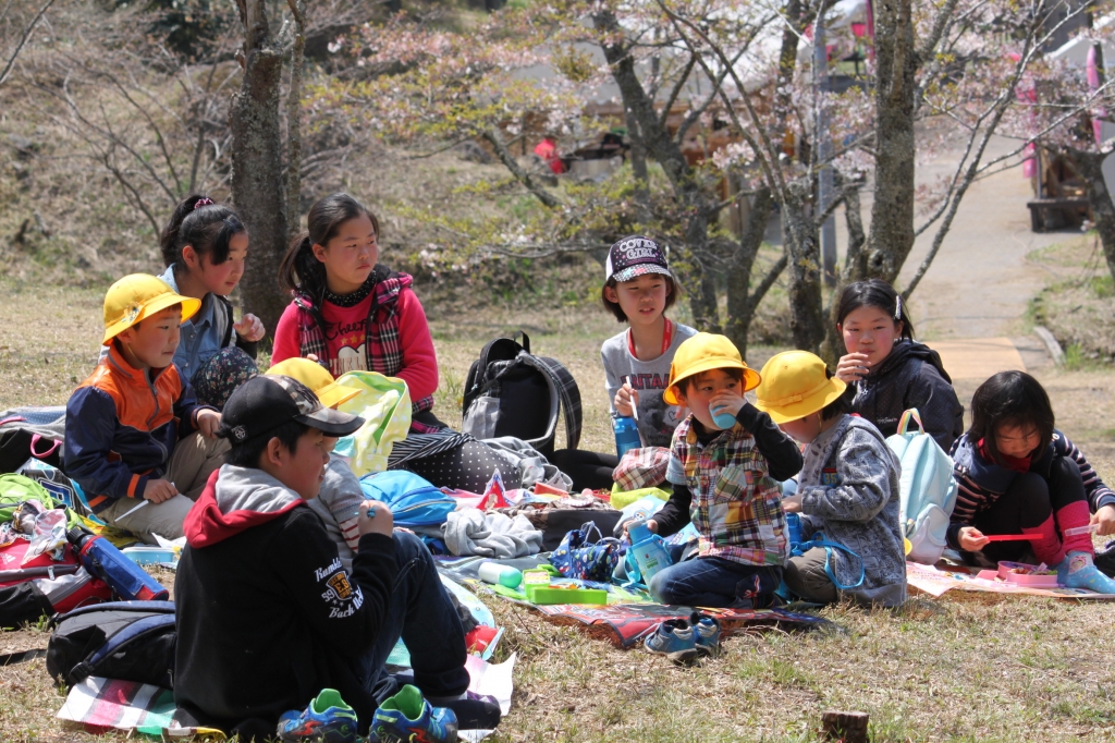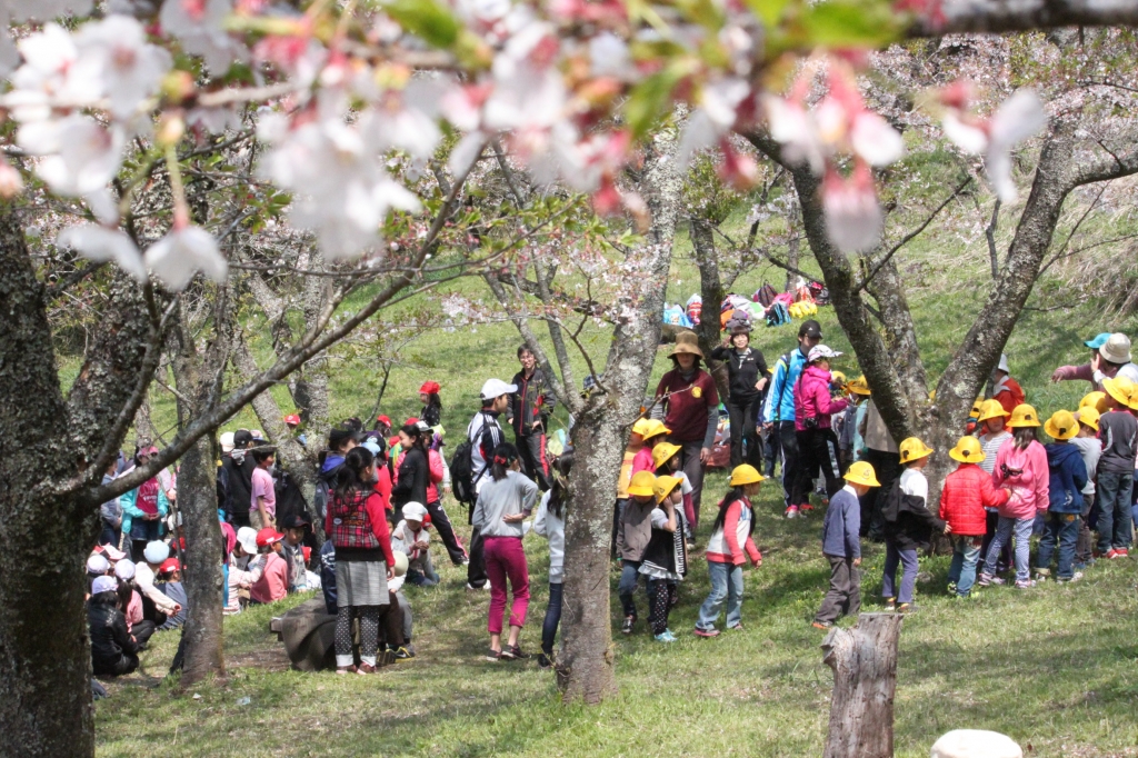 絶好のお花見、いや歓迎遠足日和でした。サクラはまだ咲いているかな?と心配しながら千本桜に登ってみると、満開のサクラが中央小学校を出迎えてくれました。