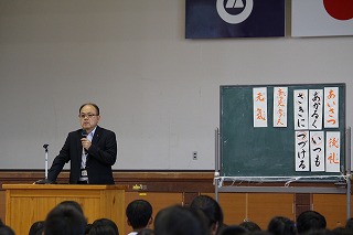 夏季休業明け集会では校長先生から①あいさつをしっかりやりましょう②意見や考えを言える人になりましょう③元気に過ごしましょう