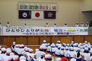 本日、運動会の結団式が行われました。今年度のスローガンは”ひとりひとりが主役 協力・感動・笑顔~心をひとつに光り輝く勝利の道へ~”です。各団の意気込みが伝わってきた結団式でした!